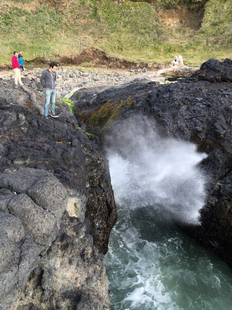 So… Thor’s Well is a thing. A kinda cool thing. The water wells up through a wide hole in the rough basalt rock that forms large swaths of the coast down Yachats way. It was picturesque, I guess, but I didn’t think really merited the ring of about fifteen people around it with cameras of varying degrees of Seriousness. Ah, the joys of social media.