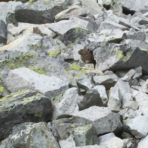We could see across the valley to the glacier at the top of the other side. It was the first time I can remember having seen in real life that ice blue color that glaciers and icebergs get! Pretty cool. We also had a bit of a chat with a pika who was peeved at how close we got to its den. And eventually the trail leveled out and we arrived at Whatcom camp, which should have been our home for the night. Thank goodness it wasn’t.